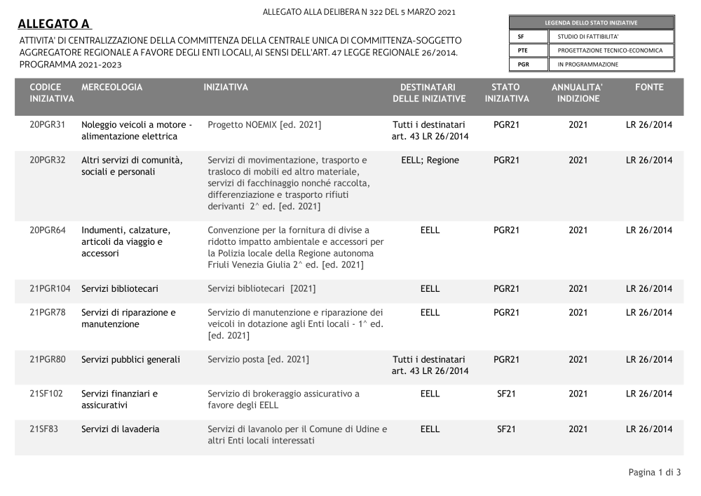 Allegato alla delibera 322 del 5 marzo 2021 - Piano gare 2021-2023